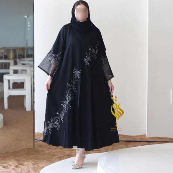 عباه دبل كلوش حركة تطريز مع اضافة كم شيفون