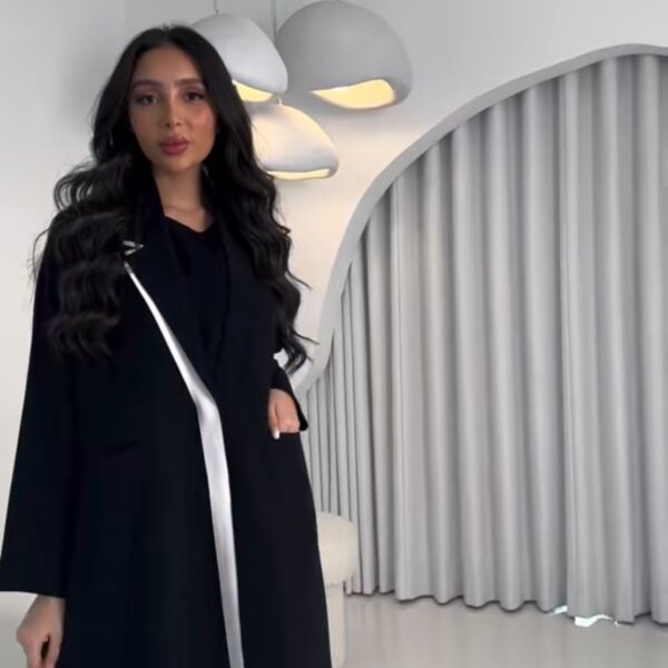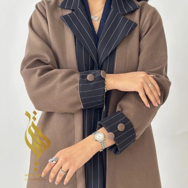 عباه شتويه بقماش جوخ خليجي مع اضافة فستان بليزر مخطط