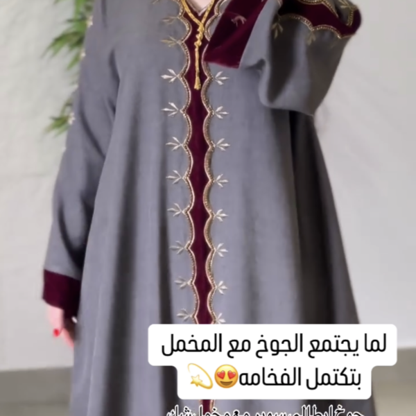 عباه بقماش شامواه شتوي حركة اكمان مخمل مع ازرار مخمل