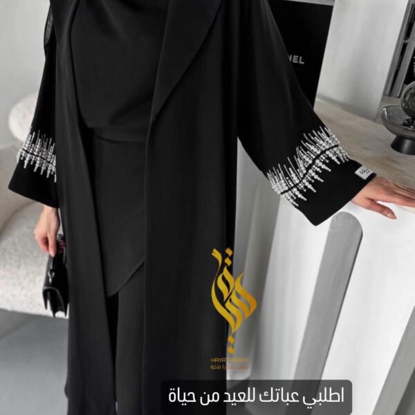 عباه بقماش لميا حركة تطريز اسود اكمام وع طولها