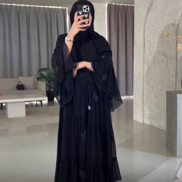عباه دبل شيفون طبقات مع اضافة شك خرز اسود موزع على كامل العباه