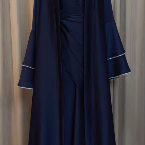 عباه لون كحلي قماش شموخ تتكون من عباه مع فستان وحركة رده للخصر