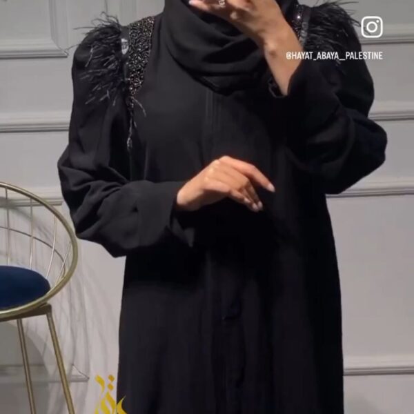 عباه قماش كريب لميا حركة اكتاف خرز مع ريش