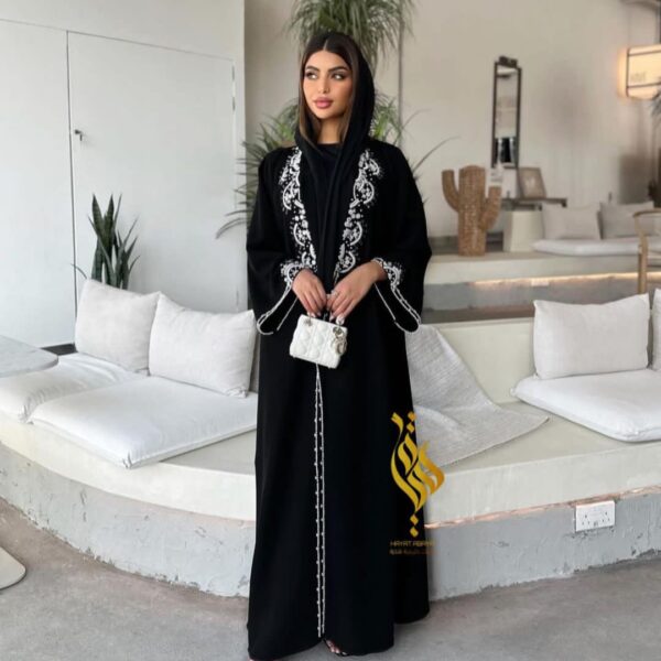 عباه بقماش لميا حركة تطريز اسود اكمام وع طولها
