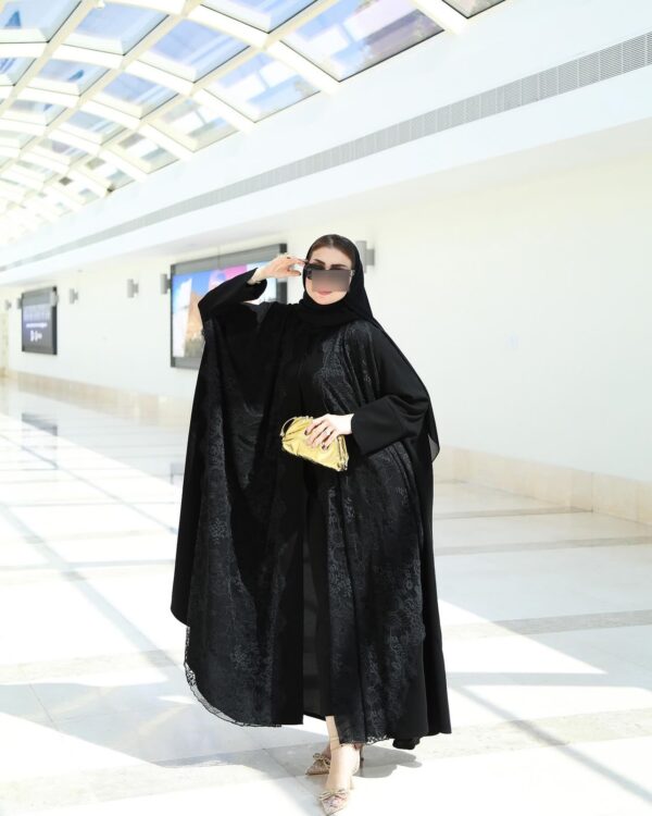 عباه مميزه باضافة حركة الدانتيل المبطن بقماش كريب لميا الملكي