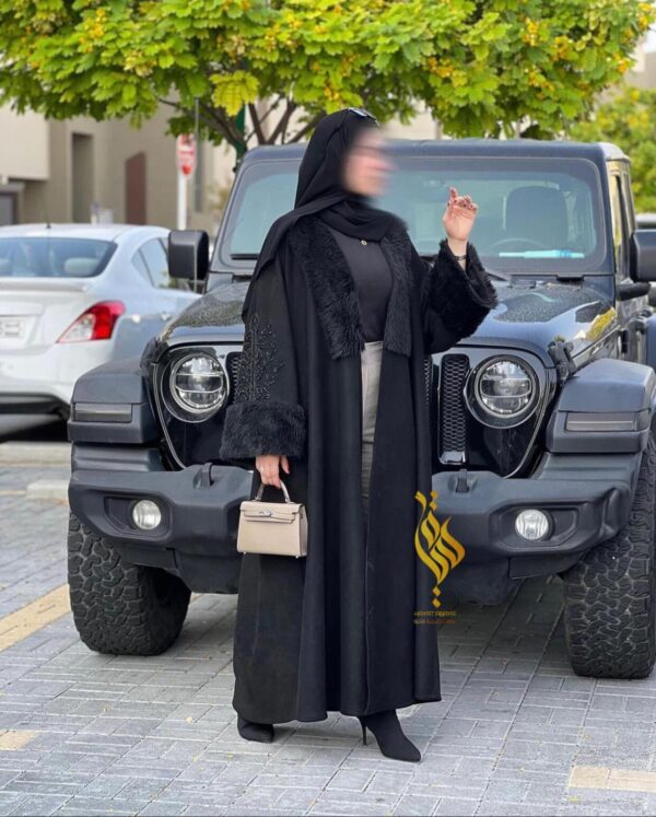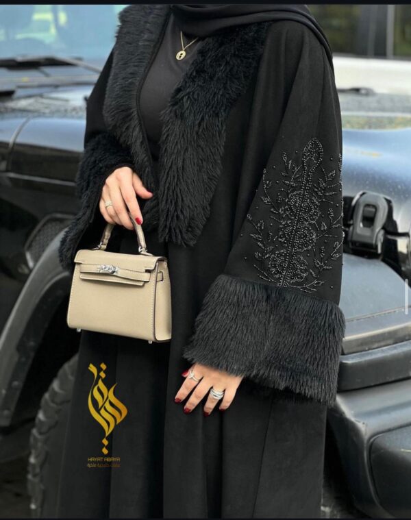 Be the first to review “عباه بتصميم شتوي قماش شامواه خليجي فخم حركه فرو قبه واكمام مع اضافة شك الخرز”