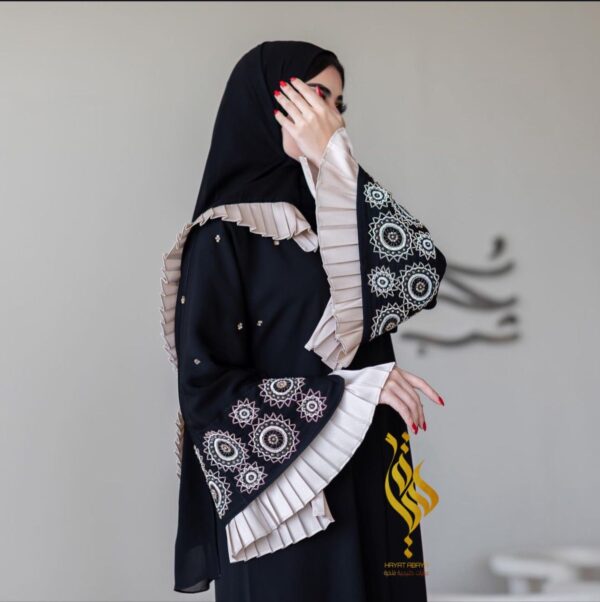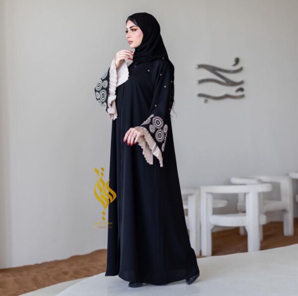 عباه بتصميم فخم حركه خرز مع تطريز ع الاكمام مع اضافة حركة قماش ملون