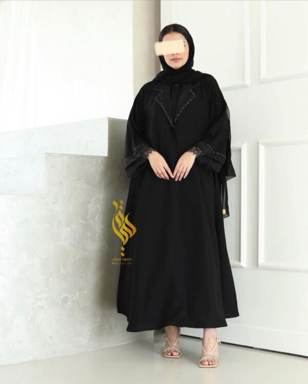 Be the first to review “عباه دبل كلوش بتصميم ملوكي بحركة دانتيل وشك الخرز”