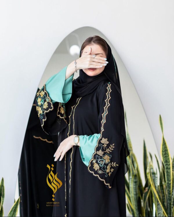 عباه فخمه بتصميم كم عصري اضافه الى شك الخرز ممزوجه بحركة فخمه للظهر