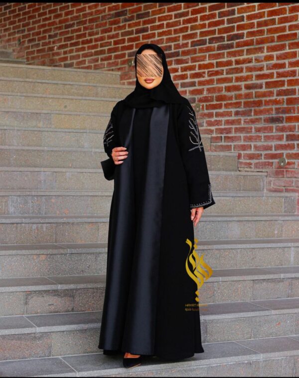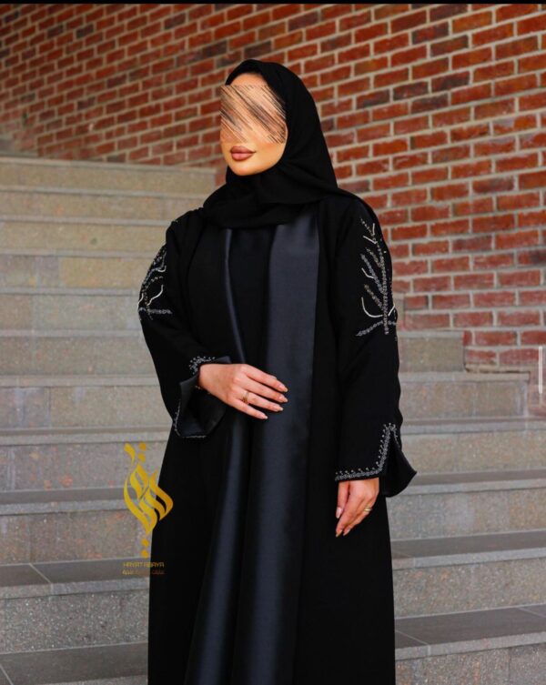 Be the first to review “عباه مميزه باضافة شك خرز للاكمام مع تدخيل قماش تفته الخليجي من الامام”