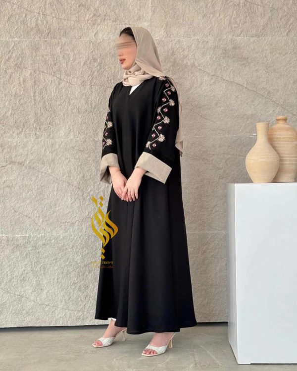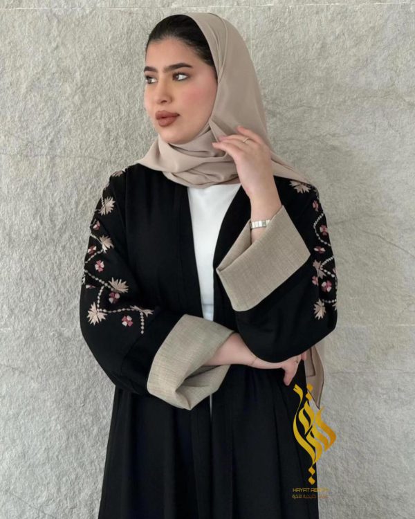 عباه ناعمه تتميز بحركة تطريز للكمام مع اضافة ثنيه للكم