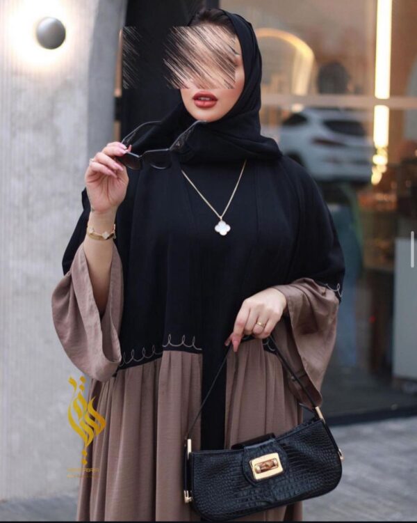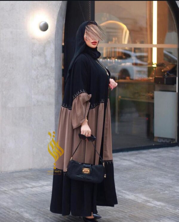 عباه مكونه من تدخيل نوعين من القماش مع حركة شك تطريز هاريع الاكمام والوسط