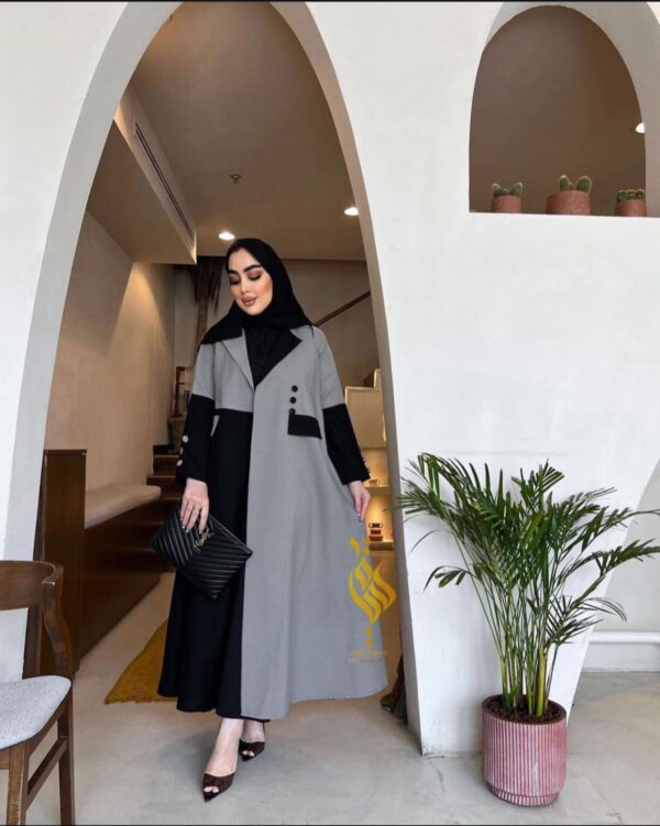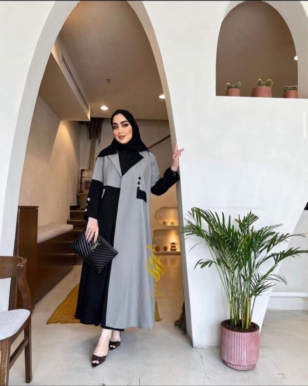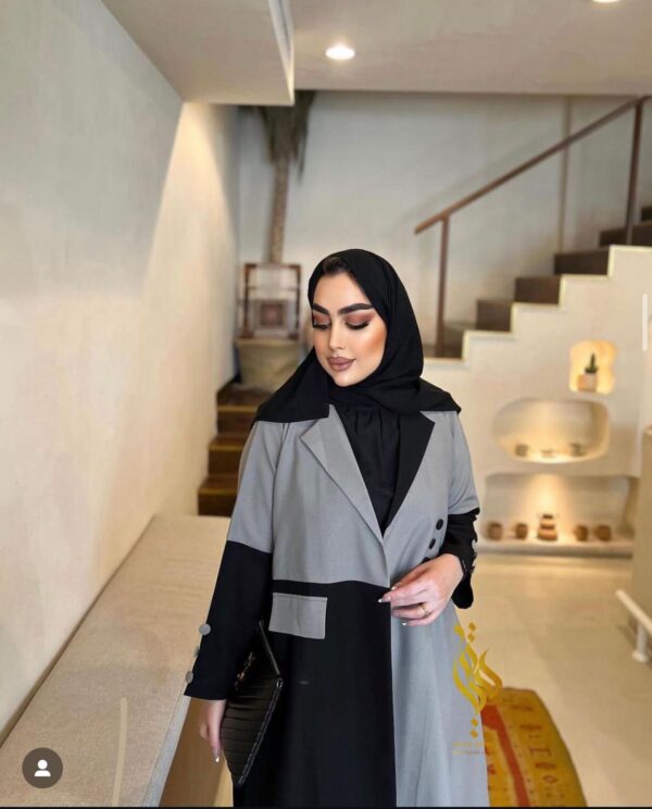 عباه مكونه من تدخيل نوعين من القماش مع حركة قبه وجيب وازرار