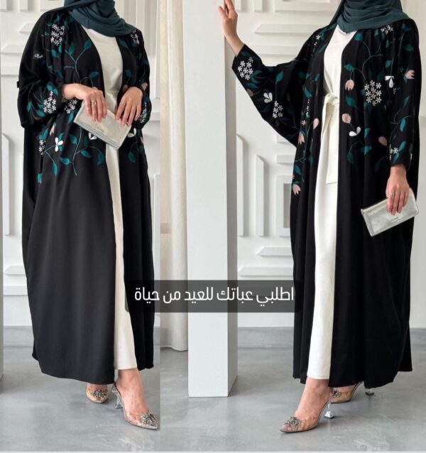 عباية عملية حركة تطريز بالوان ناعمه حركه كم اماراتي مع فستان ناعم لون ابيض